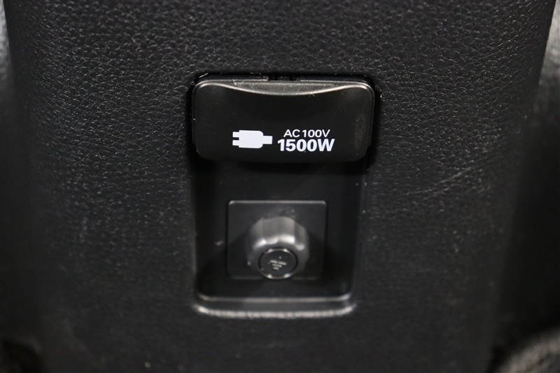 足元には家庭用と同じコンセント【100V・1500W電源】を装備。PCなどの電気製品に対応し、走行中にも使用することができます。アウトドアでも活躍しますし、停電などの非常時には電源としても使えます。