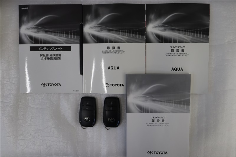 メンテナンスノート、取扱説明書です。メンテナンスノートにはその車の整備記録が事細やかに記録されています。車の履歴が判るとても重要な物です。車検証と一緒に大切に保管してくださいね!