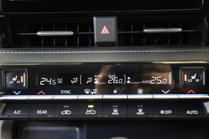 エアコンはDUAL設定で、左右個別の設定が出来るオートエアコンです。場所や個人の体感による温度差も解消できて、それぞれが快適に過ごせます。