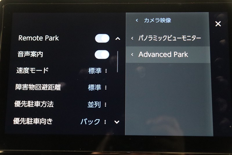 アドバンストパーク搭載。駐車したい場所の傍に停車して駐車位置を設定すれば、カメラとソナーで周囲を監視し、ステアリング・アクセル・ブレーキ操作が支援され駐車を完了してくれます。リモート機能付きです。