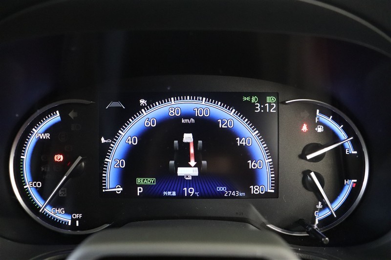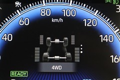 走行状態に応じて前輪駆動走行状態から4輪駆動走行状態まで自動制御してくれるE-Four。各輪にかかる駆動力(トルク)を積上げ目盛りで表示してくれるので、トルク配分が一目で確認できて便利です。