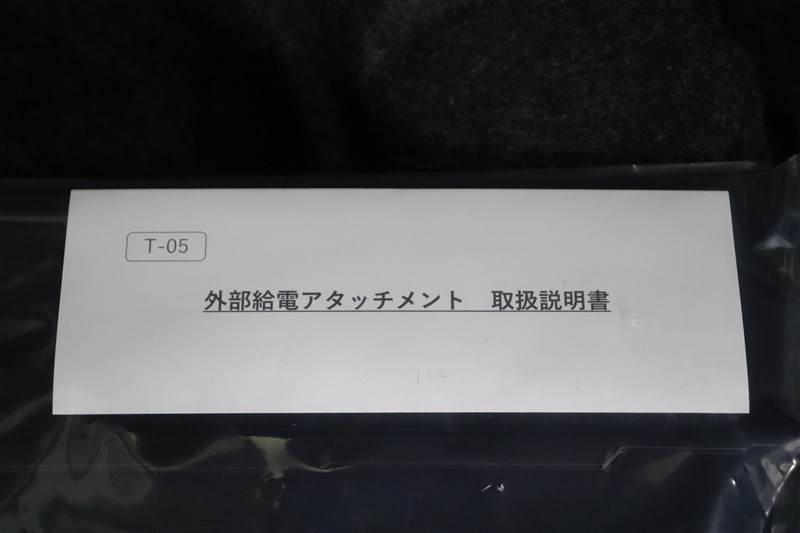 非常時給電システムを作動させる場合に窓に装着する外部給電アタッチメントを装備しています。給電コードを窓から出すので雨天の場合には雨の侵入防止になりますし、虫などの侵入も防げます。