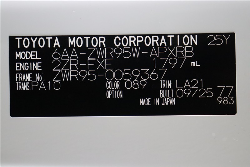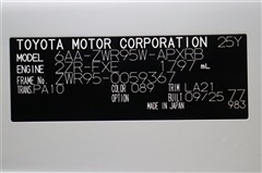 車両型式、フレームナンバーなどを表記したプレートです。最後までご覧いただきましてありがとうございました!ご不明な点などございましたら、お気軽にお問い合わせください。