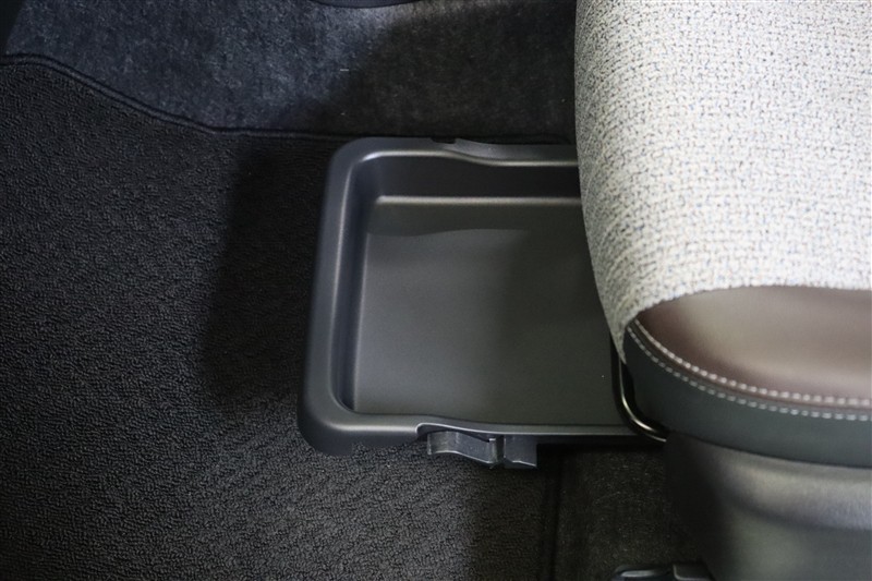 助手席下にはシートアンダートレイを装備しています。引き出して床にじかに置きたくない買い物袋を置いたり、雨の日には濡れたカバンを置いたりもできます。ティッシュなどの収納としても便利に使えます。