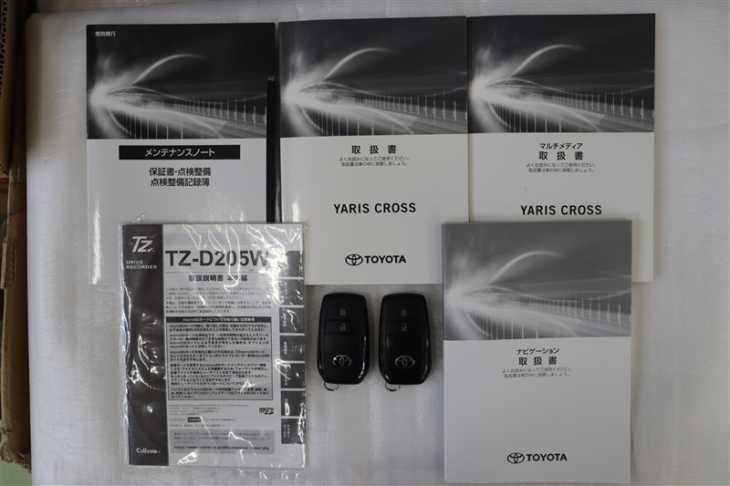 メンテナンスノート、取扱説明書です。メンテナンスノートにはその車の整備記録が事細やかに記録されています。車の履歴が判るとても重要な物です。車検証と一緒に大切に保管してくださいね!