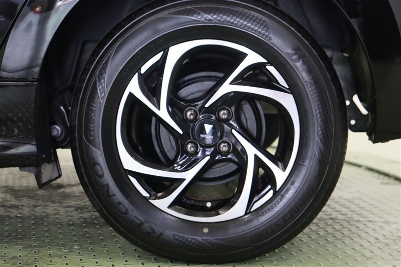 軽快にスピンモーションを描くスポーク切削面のシャープなグラフィックによって、躍動的でスタイリッシュな足元を演出するモデリスタ14インチアルミホイールを装着しています。
