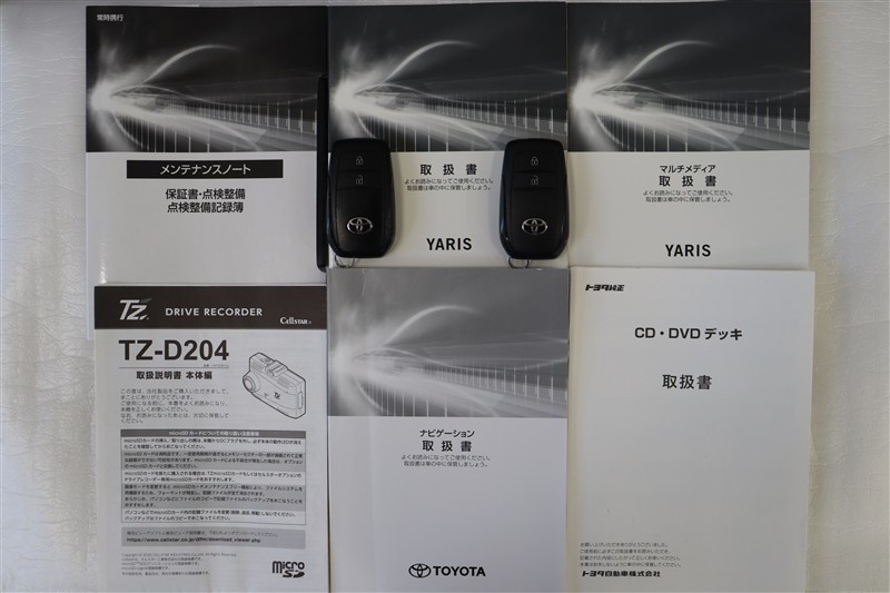 メンテナンスノート、取扱説明書です。メンテナンスノートにはその車の整備記録が事細やかに記録されています。車の履歴が判るとても重要な物です。車検証と一緒に大切に保管してくださいね!