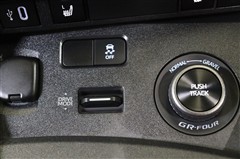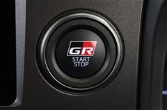スタート・ストップボタンも特別感のあるGR仕様です。キーを携帯しブレーキペダルを踏みこみ、ボタンを押すとエンジンがスタート。鞄やポケットからキーを取り出さなくてもいいのは楽ですね。