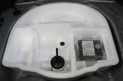 ラゲージスペースには床下収納を備えています。洗車用品などを入れておけて便利ですよ。スペース内にパンク修理キットを装備しています。最近は未使用のまま廃棄となるスペアタイヤが多いので、エコですね。