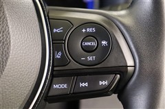 追従機能付クルーズコントロール搭載。アクセルを踏み続けなくてもセットした一定速度を維持。また、渋滞などで先行車が停止した場合停止し、先行車が再発進するとドライバー操作で発進した後に追従走行を再開します