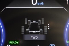 あらゆる路面状況でも安定した操縦性・走行安定性を高めつつ、燃費も向上させるHV専用4WDシステムE-Four。各輪にかかる駆動力を積上げ目盛りで表示してくれるので、トルク配分が一目で確認できます。