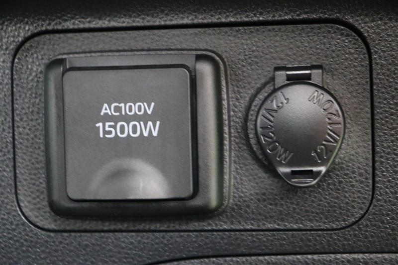 家庭用と同じコンセント【100V・1500W電源】を装備しています。PCなどの電気製品に対応し、走行中にも使用することができます。アウトドアでも活躍しますし、停電などの非常時には電源としても使えます。