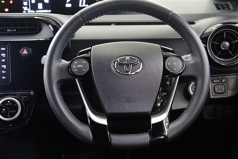 本革ステアリングにはオーディオやインフォメーションディスプレイ内の表示切替えができるスイッチ付。走行中に視線を逸らさず出来る手元操作は安全運転につながります。