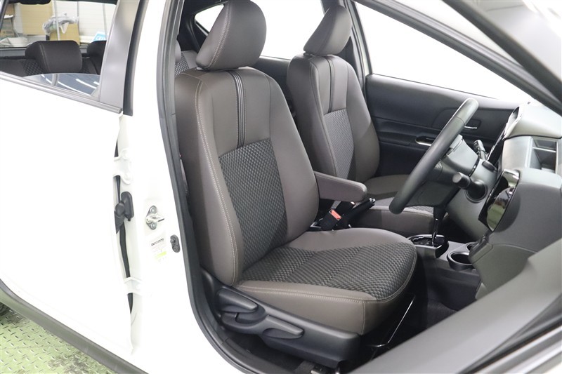 落ち着いた色合いながら、ラインがスポーティなシートは背面と座面には滑りにくく蒸れにくいファブリックを、サイドとヘッドレストは上質感のある合成皮革を使っているので快適性に高級感がプラスされたシートです。