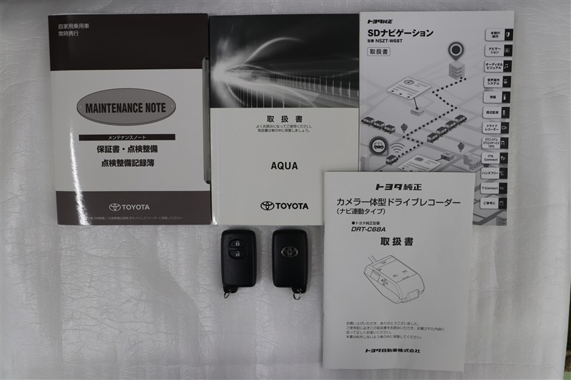 メンテナンスノート、取扱説明書です。メンテナンスノートにはその車の整備記録が事細やかに記録されています。車の履歴が判るとても重要な物です。車検証と一緒に大切に保管してくださいね!
