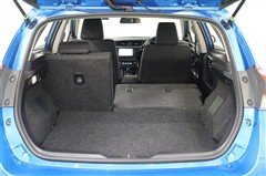 オーリスの魅力のひとつ、大容量のラゲージスペースです。このままでも充分広いですが、後部座席を倒せばフラットな大空間が現れます。