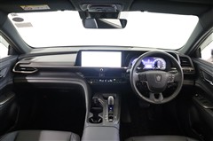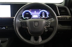 黒基調にカッパーのアクセントがお洒落な高級感を漂わせるステアリング廻りです。ディスプレイやメーター、操作機器が水平に集約され、迷うことなく直観的に運転できるデザインはさすがクラウンです。