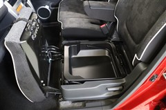助手席の座面を上げると収納スペースが現れます。防水なので、濡れた靴やシャツなども気にせず入れておけます。取っ手付きなので、外してそのまま持ち歩けます。