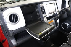 助手席は背もたれを前に倒すとテーブルになります。車内ランチなども楽しめる使えるアイテムですね。