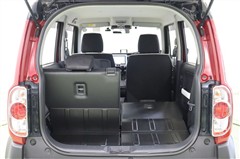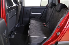 足元が広々としてゆったりと座れる後部座席です。多彩なシートアレンジもハスラーの魅力。サーフボードなど長いモノを搭載するには助手席とリヤの背もたれを倒せば荷室までほぼフラットになります。