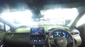 【オートマチックハイビーム】フロントガラス上部に設置されたカメラセンサーにより前方車両のランプや街路灯などの明るさを判定、自動的にハイビームとロービームを切替。