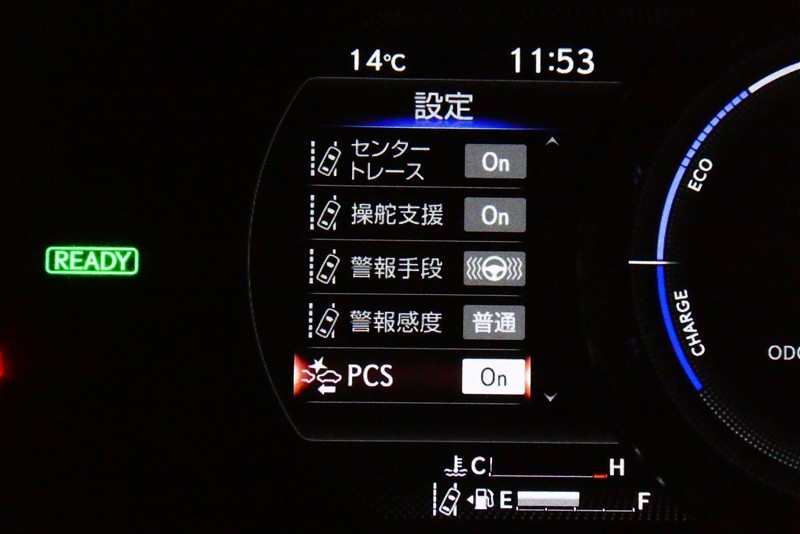 スピードメーター内のディスプレイ部に安全装備の設定状態が表示されます。