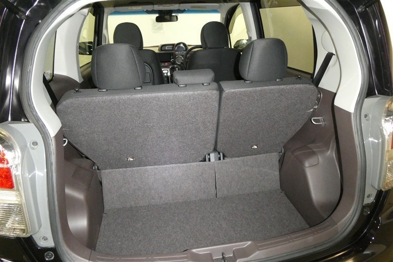 バックドアを上げた状態です。シートのアレンジ次第で荷室のスペースが広くなります!用途に合わせて快適な室内を!