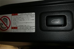 バックドアの底部にパワーバックドアとイージークローザーの取り扱いに関する説明と注意を記入したシールが貼ってあります。シールの横にパワーバックドアのスイッチが付いてます