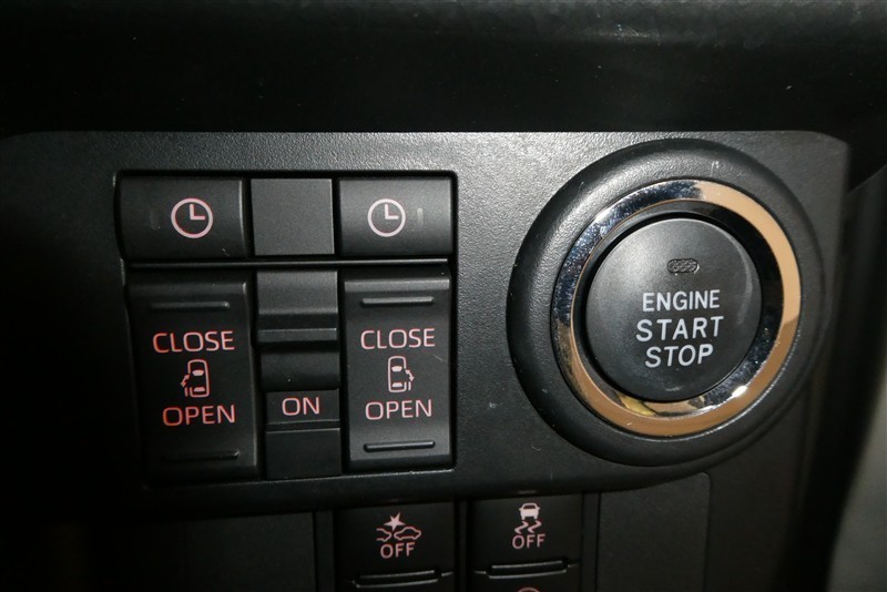 エンジン始動/停止ボタン・両側パワースライドドア開閉スイッチ・ウエルカムパワースライドドア予約スイッチ・パワースライドドアメインスイッチです