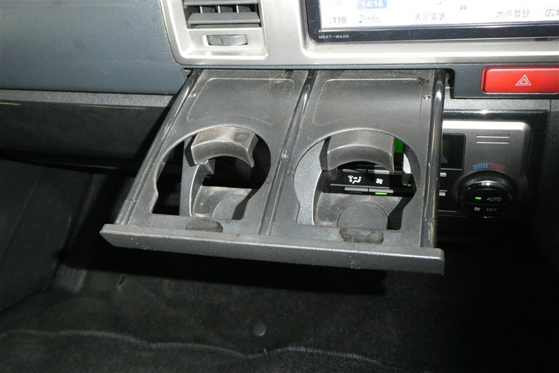 格納式のドリンクホルダー付きです。ドリンクホルダーとしてはもちろん、スマホや長財布を収納することだってできますよ。