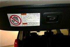 バックドアの底部にパワーバックドアとイージークローザーの取り扱いに関する説明と注意を記入したステッカーが貼ってあります。