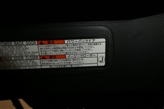 バックドアの底部にパワーバックドアとイージークローザーの取り扱いに関する説明と注意を記入したステッカーが貼ってあります。