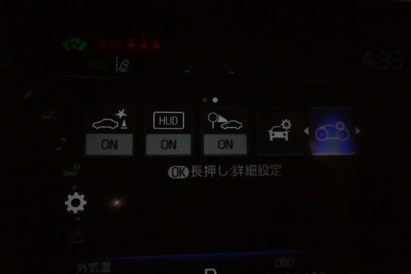 スピードメーター内のディスプレイ部に安全装備の設定状態が表示されます。