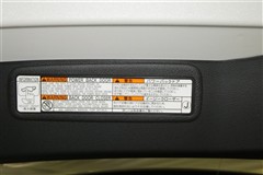 バックドアの底部にパワーバックドアとイージークローザーの取り扱いに関する説明と注意を記入したステッカーが貼ってあります。