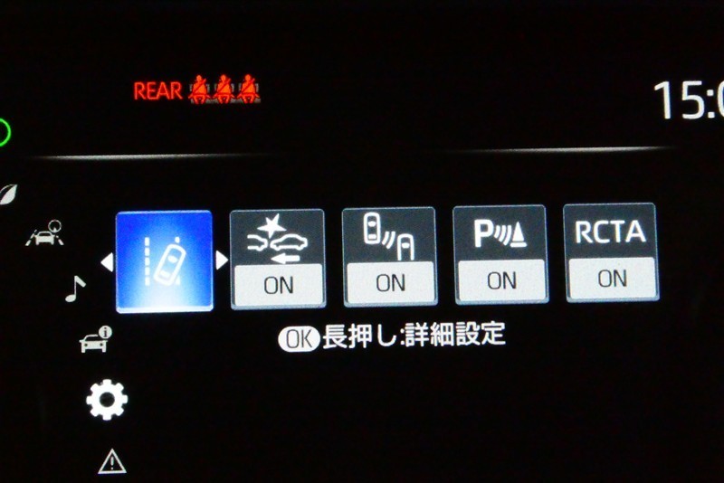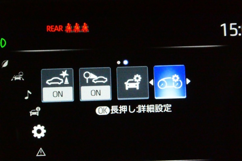 スピードメーター内のディスプレイ部に安全装備の設定状態が表示されます。