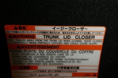 バックドアの底部にイージークローザーの注意書きシールが貼ってあります。