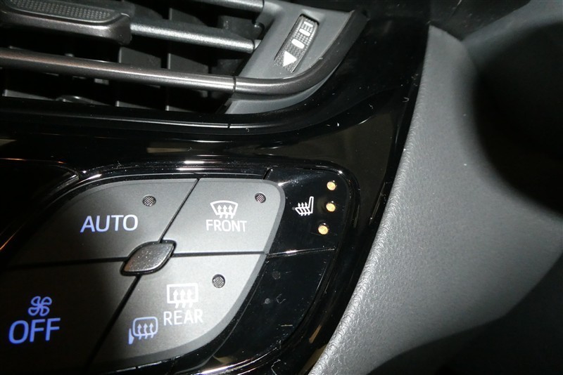 オートエアコンのAUTOスイッチ・フロントウインドウデフォッガースイッチ・リヤウインドウデフォッガー&ミラーヒータースイッチ・ファンOFFスイッチです。