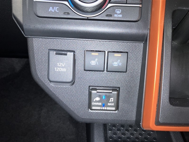 12V/120Wのソケット・運転席/助手席シートヒータースイッチ・USB端子です。