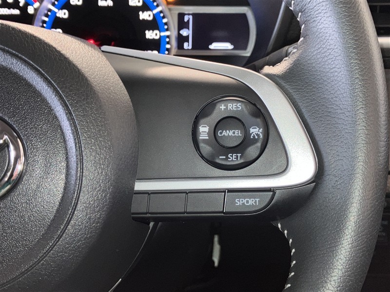 ハンドルの右側に全車速追従機能付ACC操作スイッチ・SPORTスイッチが付いています