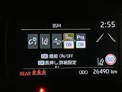 車線変更時などに、ドアミラーでは確認しにくい後側方エリア(ブラインドスポット)に存在する車両をレーダーで検知。警告サインをドアミラー等に表示することで、運転者に注意喚起する機能。
