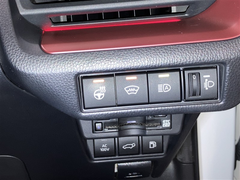 ステアリングヒータースイッチ・ウインドシールドデアイサースイッチ・オートマチックハイビームスイッチ・手動光軸調整ダイヤルです。