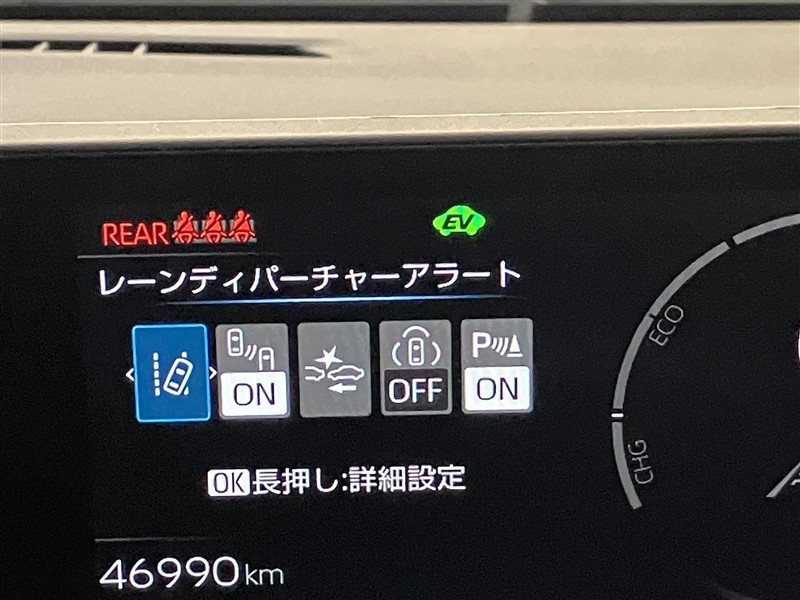 スピードメーター内のディスプレイ部に安全装備の設定状態が表示されます。