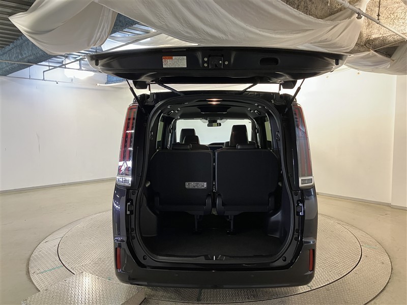 バックドアを上げた状態です。シートのアレンジ次第で荷室のスペースが広くなります!用途に合わせて快適な室内を!