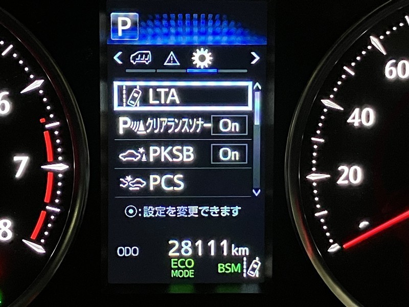 スピードメーター内のディスプレイ部に安全装備の設定状態が表示されます。