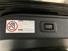 バックドアの底部にパワーバックドアとイージークローザーの取り扱いに関する説明と注意を記入したシールが貼ってあります。シールの横にパワーバックドアのスイッチが付いてます