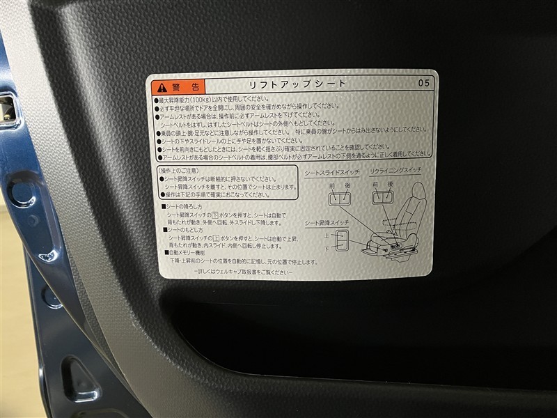 リフトアップシートの使用に関する説明と注意事項のステッカーです。
