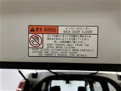 バックドアの底部にイージークローザーの注意書きシールが貼ってあります。