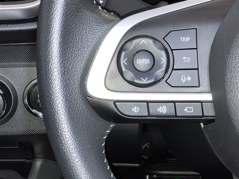 ステアリング左側にメーター操作スイッチ・トークスイッチ・オーディオ操作スイッチ・カメラ/パーキングアシストスイッチが付いています。