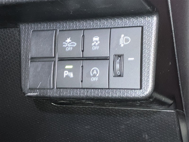 スマートアシストOFFスイッチ・VSC OFFスイッチ・コーナーセンサースイッチ・eco IDLE OFFスイッチ手動光軸調整ダイヤルです。