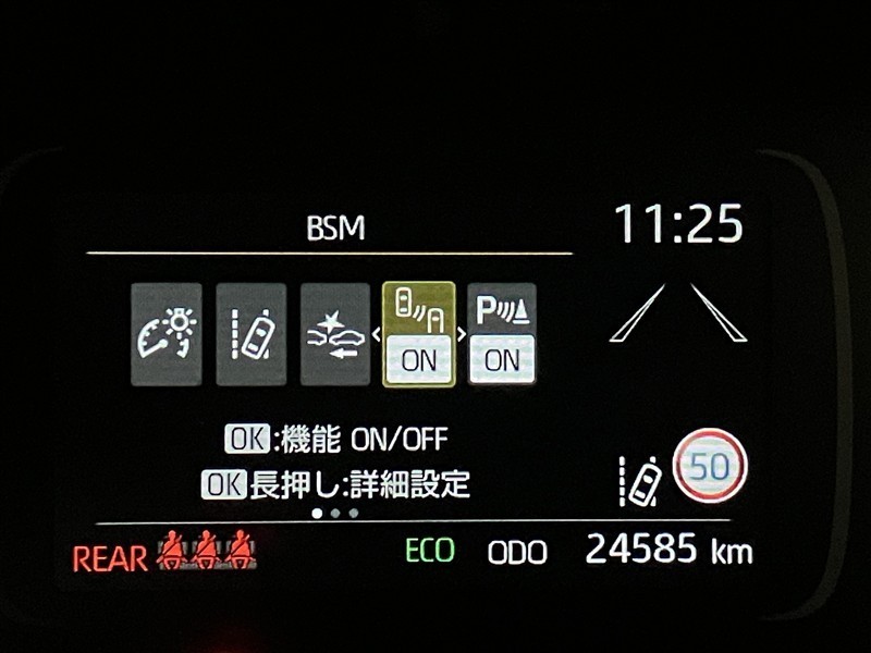 車線変更時などに、ドアミラーでは確認しにくい後側方エリア(ブラインドスポット)に存在する車両をレーダーで検知。警告サインをドアミラー等に表示することで、運転者に注意喚起する機能。
